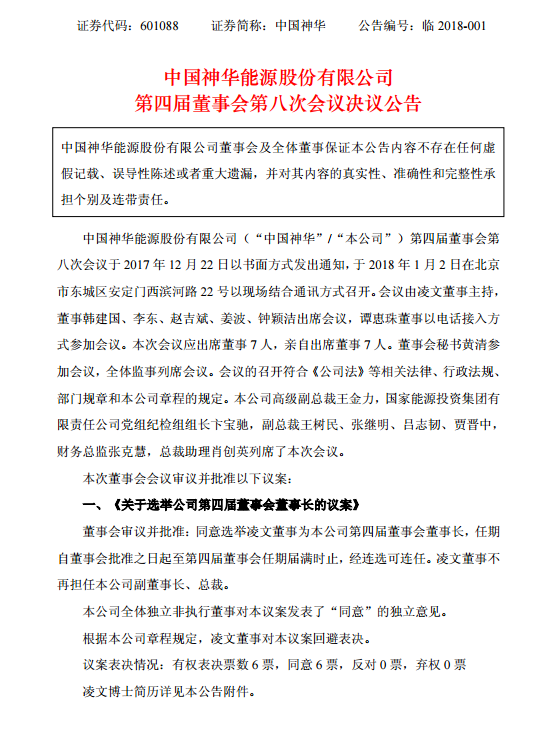 1月2日,中國神華發(fā)布公告稱,凌文獲委任為董事長,即日生效,任期自董事會批準之日起至第四屆董事會任期屆滿時止,經連選可連任,不再擔任