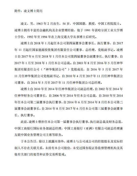 重磅|中國神華公布一把手最新任命:凌文擔任董事長