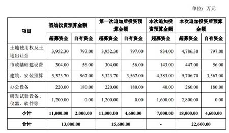 根據“智能配電網技術研發(fā)中心及公司總部項目”目前建設需求,現(xiàn)使用超募資金7,000萬元對項目第二次追加投資,本次追加投資后項目總投資額增至22,600萬元。本次追加的投資主要用于建筑工程投資、研發(fā)試驗設備儀器軟件、土地使用權及土地出讓金、市政基礎建設費、辦公設備等。本次追加投資前后,該項目投資預算資金情況如下: