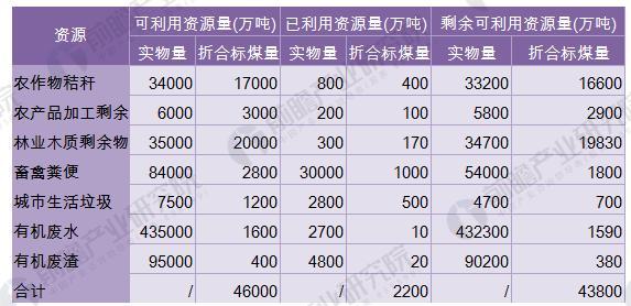 全國農(nóng)作物秸稈年產(chǎn)生量約為8億噸,除部分作為造紙原料和畜牧飼料外,大約3.4億噸可作為燃料使用,折合約1.7億噸標(biāo)準煤;林木枝椏和林業(yè)廢棄物年可獲得量約9億噸,大約3.5億噸可作為能源利用,折合約2億噸標(biāo)準煤;甜高粱、小桐子、黃連木、油桐等能源植物(作物)可種植面積達2000多萬公頃,可滿足年產(chǎn)量約5000萬噸生物液體燃料的原料需求;畜禽養(yǎng)殖和工業(yè)有機廢水理論上可年產(chǎn)沼氣約800億立方米,全國城市生活垃圾年產(chǎn)生量約1.2億噸。