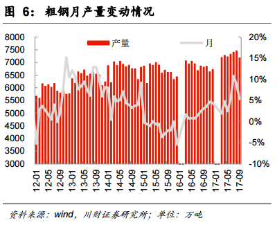 水泥、鋼鐵耗電部門耗電量下降。2017年實(shí)現(xiàn)水泥產(chǎn)量23.16億噸,同比降低3.61%。2017年全年粗鋼產(chǎn)量8.32億噸,2016年全年粗鋼產(chǎn)量為8.08億噸,考慮到2016年未列入統(tǒng)計(jì)范圍的地條鋼產(chǎn)量約1億噸,則2016年實(shí)際粗鋼產(chǎn)量為9.08億噸。相較2016年,2017年粗鋼產(chǎn)量同比下降8%左右。