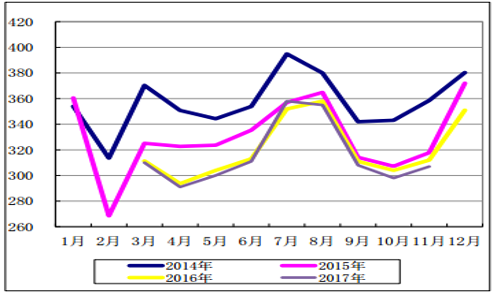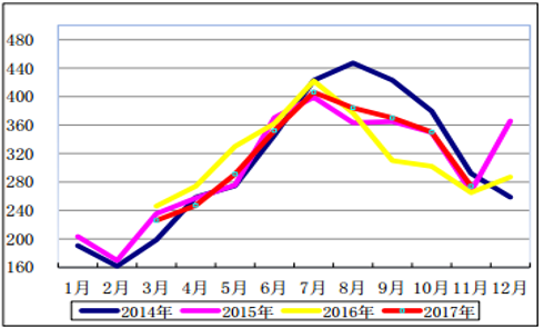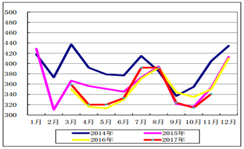 2017年11 月份, 全國(guó)全部機(jī)組利用小時(shí) 307 小時(shí), 同比下降 5 小時(shí)。1-11 月份,全國(guó)發(fā)電設(shè)備累計(jì)平均利用小時(shí) 3416 小時(shí),比上年同期降低 18 小時(shí)。