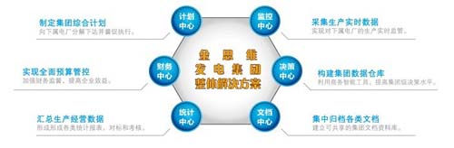 金思維發(fā)電集團信息化解決方案針對集團化管理模式,以全面預(yù)算和成本控制為核心,以計劃管理為龍頭,以 協(xié)同辦公、實時數(shù)據(jù)、財務(wù)分析、對標(biāo)考核、燃料物資、基建工程和安全監(jiān)督為基礎(chǔ),構(gòu)建發(fā)電集團管控一體的