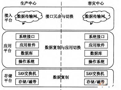 主要表現(xiàn)為對業(yè)務(wù)處理能力的冗余和復(fù)用,其中包括操作系統(tǒng)、應(yīng)用系統(tǒng)、數(shù)據(jù)庫、中間件等層面的復(fù)制及切換的能力。
