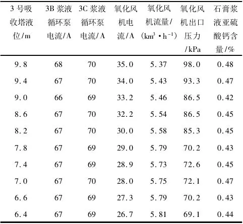 表1 3號吸收塔降液位運行參數(shù)變化表