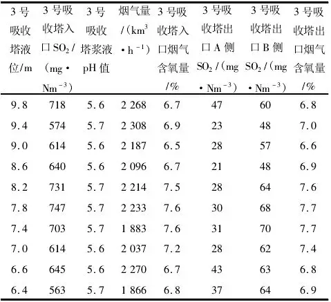 表2 3號吸收塔降液位CEMS運行參數(shù)變化表