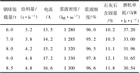 2.2 濕式球磨機單耗優(yōu)化調(diào)整