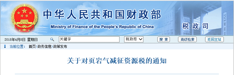 近日,財(cái)政部、稅務(wù)總局發(fā)布《關(guān)于對(duì)頁巖氣減征資源稅的通知》,為促進(jìn)頁巖氣開發(fā)利用,有效增加天然氣供給,經(jīng)國務(wù)院同意,自2018年4月1日