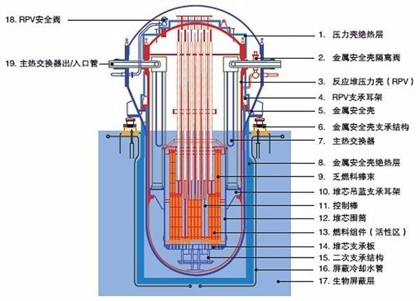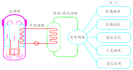 壓力殼內(nèi)充滿去離子水,反應(yīng)堆核裂變產(chǎn)生的能量以壓力殼中的水為媒介,通過熱交換器帶出去,然后通過中間回路、熱網(wǎng)/蒸汽回路等將熱能送往千家萬戶。