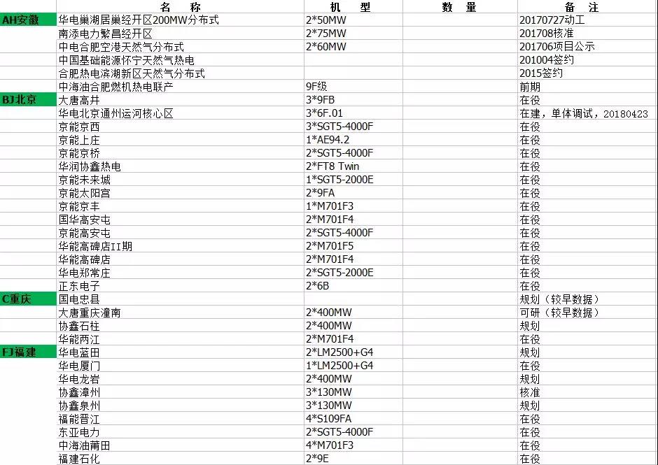 國內(nèi)在役、在建、核準(zhǔn)規(guī)劃燃機(jī)項(xiàng)目(不包括我國香港澳門臺灣地區(qū))