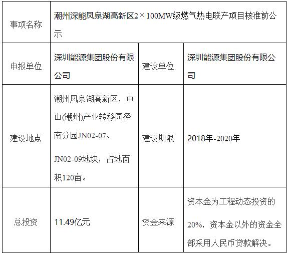 四、潮州深能鳳泉湖高新區(qū)2×100MW級燃氣熱電聯(lián)產(chǎn)項目核準前公示