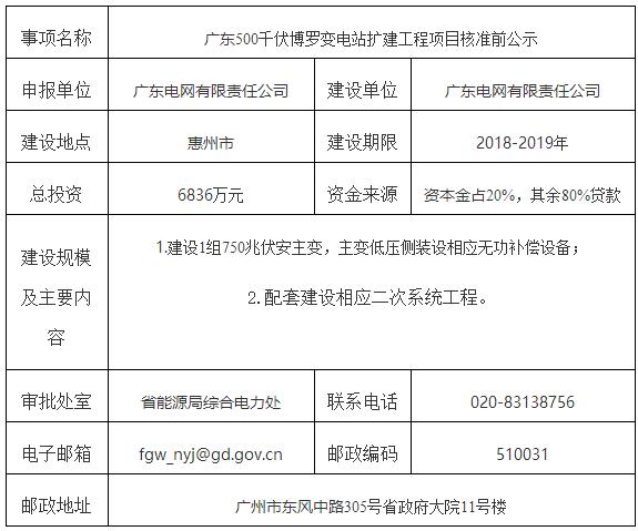 三、廣東500千伏博羅變電站擴建工程項目核準前公示