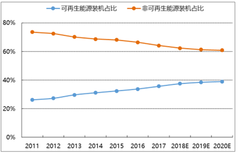 可再生能源和非可再生能源裝機占比