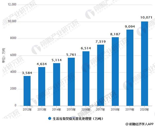 2012-2020年生活垃圾焚燒無害化處理量預測(萬噸)