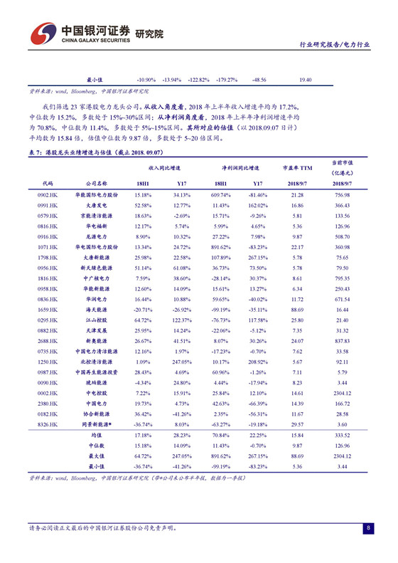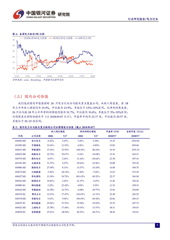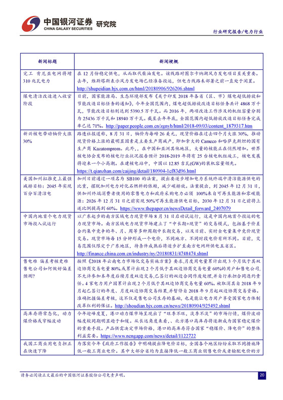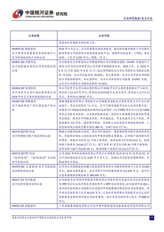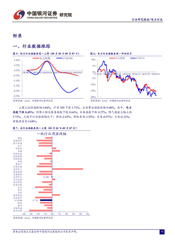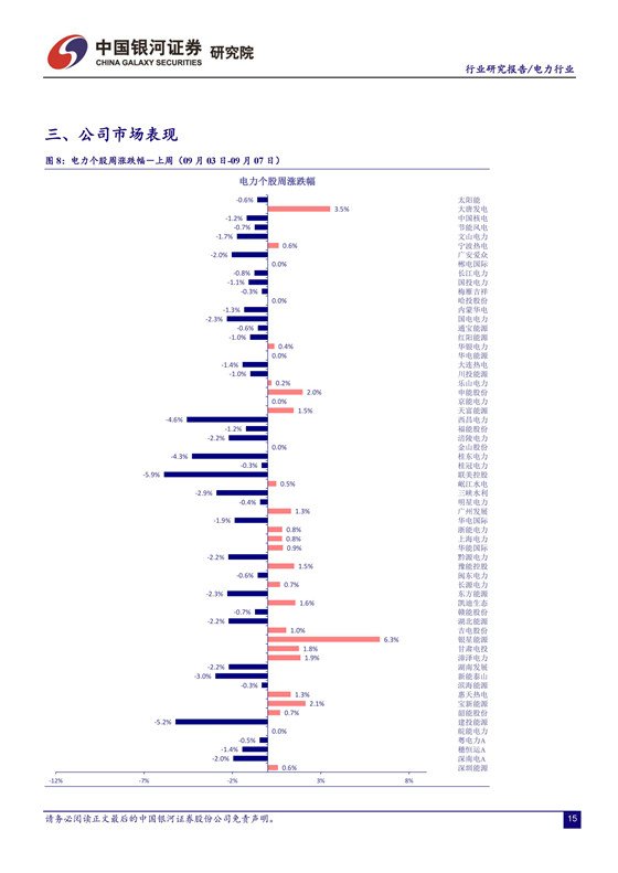 電價(jià)承壓,四季度火電業(yè)績(jī)面臨較大挑戰(zhàn)。 由于去年電價(jià)上調(diào)的時(shí)間點(diǎn)出現(xiàn)在 7 月份,火電公司下半年收入的同比基數(shù)將有所增加,疊加電力需求趨緩,煤炭成本上行的壓力,四季度火電業(yè)績(jī)可能面臨較大挑戰(zhàn)。不確定因素增加導(dǎo)致市場(chǎng)避險(xiǎn)情緒升溫。受 2000 億的關(guān)稅清單消息影響,上周市場(chǎng)維持震蕩走勢(shì),上證綜指日內(nèi)最大跌幅 1.68%,周跌幅 0.84%。建議關(guān)注業(yè)績(jī)改善空間大且安全邊際較高的火電公司,以及來(lái)水向好助推盈利提升的水電公司。 建議關(guān)注火電龍頭華能國(guó)際、華電國(guó)際及區(qū)域性代表公司福能股份、粵電力 A、皖能電力等。另外, 我們持續(xù)推薦水電龍頭長(zhǎng)江電力。 公司作為全球最大的水電上市公司,資源稟賦優(yōu)異,分紅比例高,現(xiàn)金流價(jià)值凸顯。建議關(guān)注國(guó)投電力、川投能源、黔源電力等。