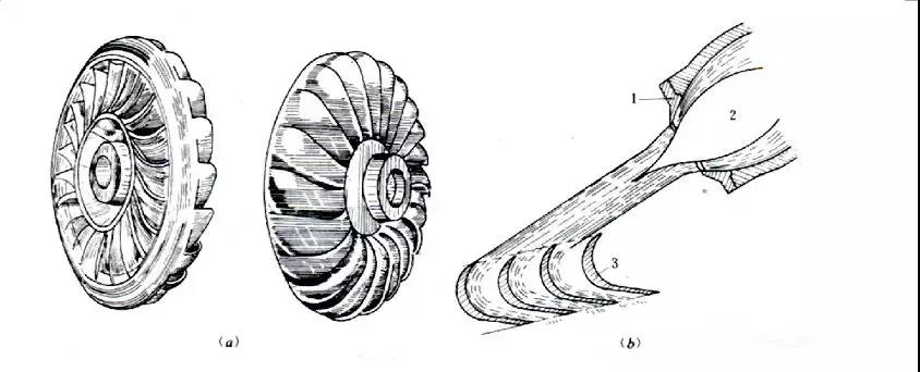 (a)轉(zhuǎn)輪;(b)斜擊式轉(zhuǎn)輪進水示意圖