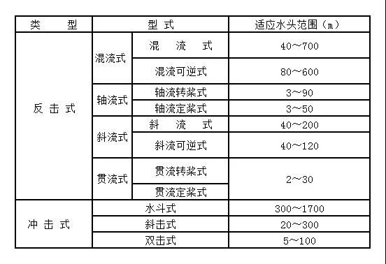 水輪機的主要類型有哪些?分別適用多高水頭?