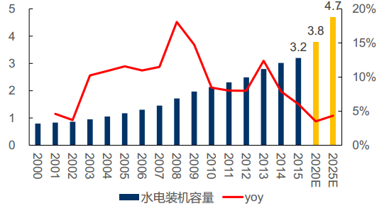 水電新增裝機(jī)增速下滑(單位:億kW)