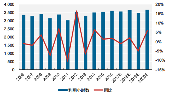 水電行業(yè)利用小時數(shù)(h)