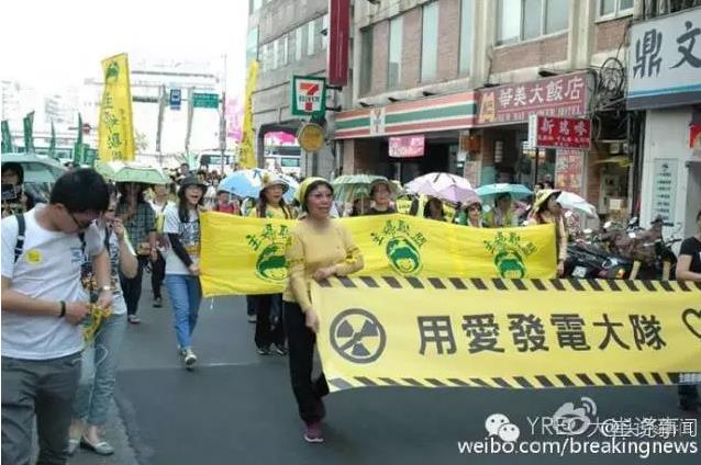 臺灣反對核電團(tuán)體的"用愛發(fā)電"標(biāo)語
