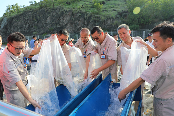 8月24日,觀音巖水電公司在庫區(qū)左岸碼頭開展2018年秋季放流活動,干部員工和地方政府相關(guān)部門人員聯(lián)手為金沙江中游放流46.5萬尾珍稀魚苗。
