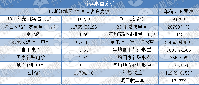 余電上網(wǎng)收益(元/kwh):脫硫電價(0.35)+國家補貼(0.42)+地方補貼(0.30)=1.07元;