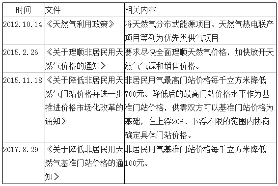 另一方面,近年來,國家陸續(xù)制訂天然氣政策對天然氣分布式能源行業(yè)進行扶持:2012年出臺的《天然氣利用政策》,將天然氣分布式能源項目、天然氣熱電聯(lián)產(chǎn)項目等列為優(yōu)先類供氣項目;2015年11月,發(fā)改委發(fā)布通知,非居民用氣門站價格每千立方米降低700元;2017年8月,發(fā)改委再次調(diào)整非居民用氣基準門站價格,每千立方米下調(diào)100元。隨著天然氣價格的下調(diào),天然氣交易市場化推進,世紀新能源的成本不斷下降。