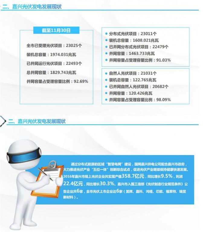 全國(guó)光伏看浙江,浙江光伏看嘉興。截止2017年年末,嘉興市的分布式光伏裝機(jī)總量已經(jīng)達(dá)到1 5G。光伏滲透率指標(biāo),2016年度嘉興的海寧市已高達(dá)
