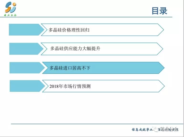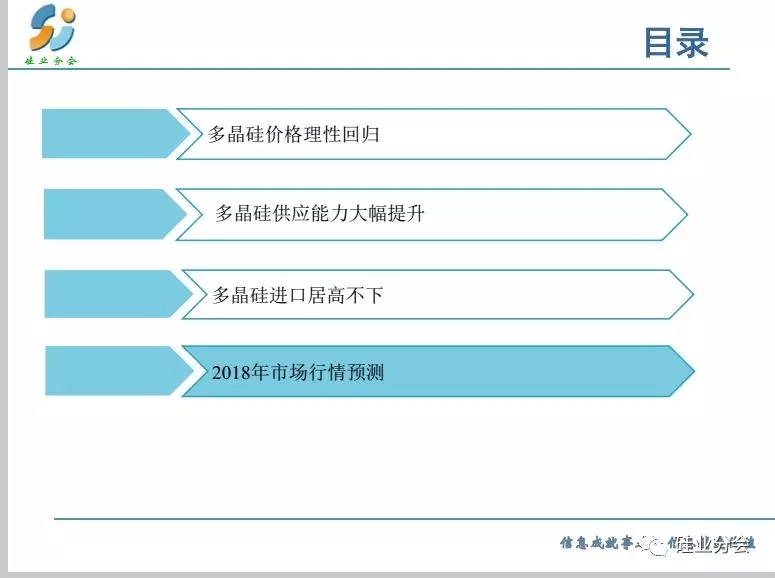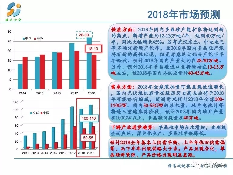 預(yù)測2018全年基本上供需平衡,特別是上半年,而下半年出現(xiàn)供大于求的失衡狀態(tài)。但是產(chǎn)品呈現(xiàn)分化,單晶硅料緊張,產(chǎn)品價格出現(xiàn)明顯差距。