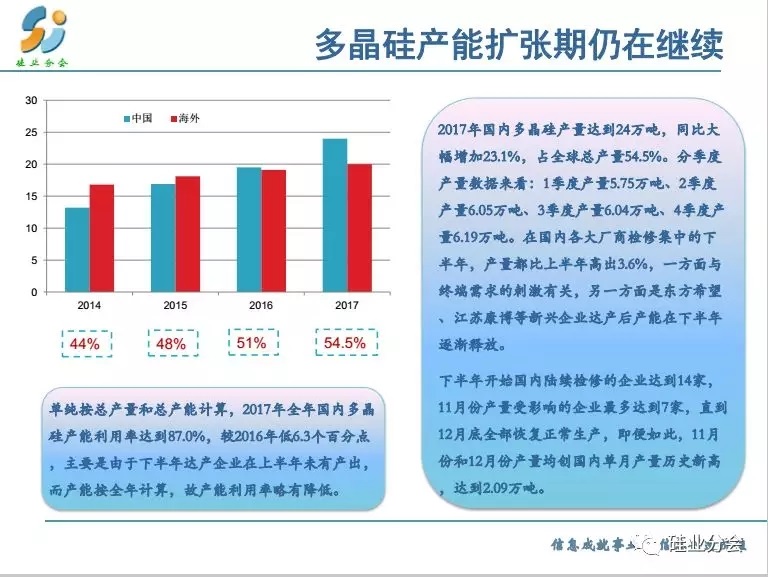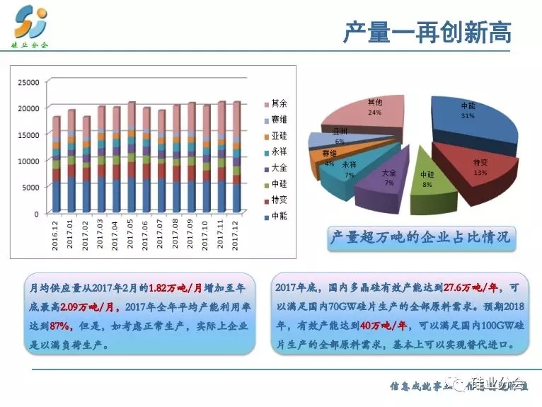 供應(yīng)方面:2018年國內(nèi)多晶硅產(chǎn)能擴(kuò)張將達(dá)到新的高點,新增產(chǎn)能約12-13萬噸 年,達(dá)到40萬噸 年,同比大幅增長45%。另有武漢東立、中電電氣等