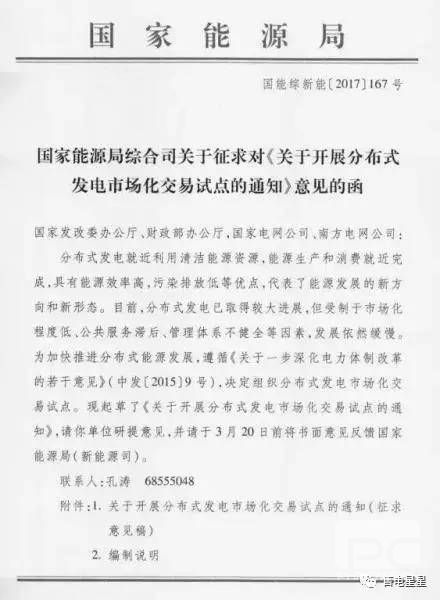 近日,國家能源局綜合司下發(fā)關(guān)于征求對《關(guān)于開展分布式發(fā)電市場交易試點(diǎn)的通知》意見的函,給光伏市場帶來一大利好消息:分布式光伏可以市場化交易了?。ū疚膩碓矗何⑿殴娞柺垭娦切?微信號:zcm32597 作者