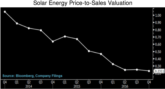 太陽(yáng)能股價(jià)與銷售額比率下降