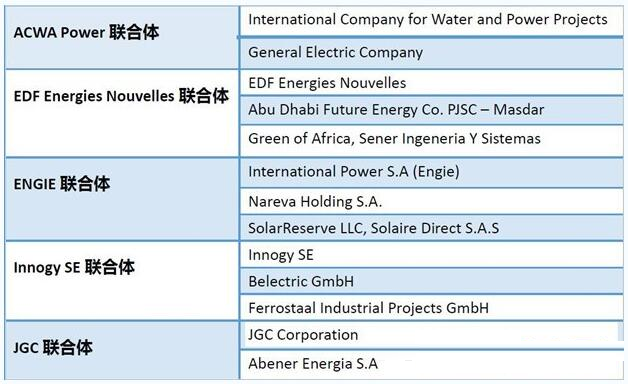圖:已取得預(yù)審資格的5家聯(lián)合體名單