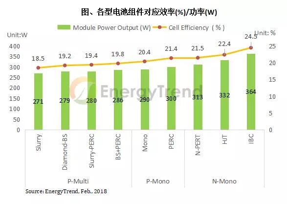 集邦新能源網EnergyTrend指出,領跑者計劃實際上僅制定組件瓦數的最低門檻,業(yè)者若要順利得標,必須將產品做到高標水平,因此業(yè)者除了提升PERC、黑硅等P型電池技術之外,亦可透過雙面電池、半切、多主柵(MBB)等整合技術來達到高水平的表現。