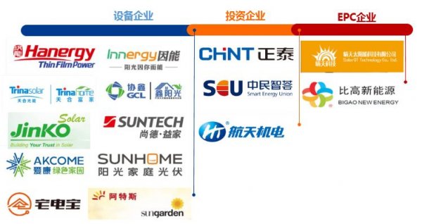 目前主要的戶用系統(tǒng)品牌商集中在設(shè)備企業(yè)、投資企業(yè)和EPC企業(yè),其中以設(shè)備企業(yè)居多。