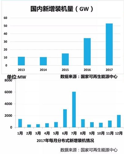 根據(jù)中國光伏行業(yè)協(xié)會王勃華秘書長報(bào)告指出,2017年,全球光伏新增裝機(jī)容量達(dá)到102GW,同比增長超過37%,累計(jì)裝機(jī)容量達(dá)到405GW;其中我國新增裝機(jī)量53GW,同比增長超過53.6%,連續(xù)5年位居世界第一,累計(jì)裝機(jī)容量達(dá)到130GW。