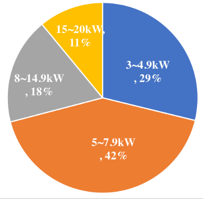 根據(jù)王淑娟老師對幾家戶用市場占有率高的逆變器企業(yè)的國內(nèi)戶用機(jī)型的出貨量數(shù)據(jù),5kW是目前最主流的機(jī)型,占比約在40%左右。經(jīng)過加權(quán)平均計(jì)算平均戶用光伏系統(tǒng)單體容量約6.9KW。
