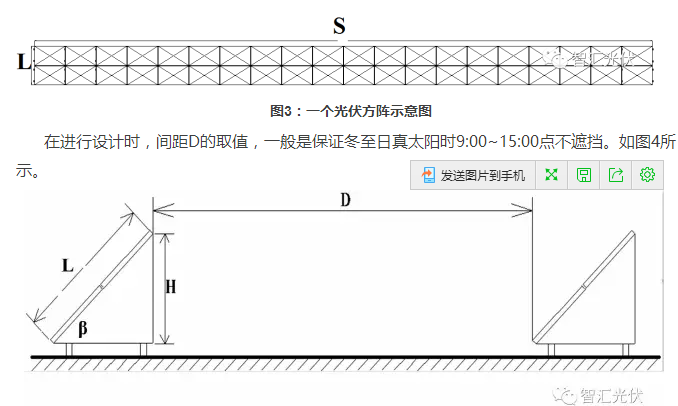 如果光伏方陣安裝傾角為β,則一個(gè)光伏方陣的占地面積計(jì)算如下。