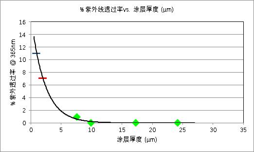 圖4. 紫外阻隔層厚度與紫外線穿透率的關系