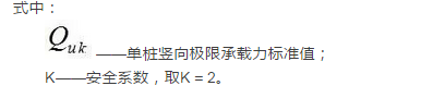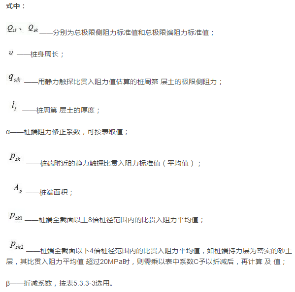 當(dāng)根據(jù)單橋探頭靜力觸探資料確定混凝土預(yù)制樁單樁豎向極限承載力標(biāo)準(zhǔn)值時(shí),如無當(dāng)?shù)亟?jīng)驗(yàn),可按下式計(jì)算。