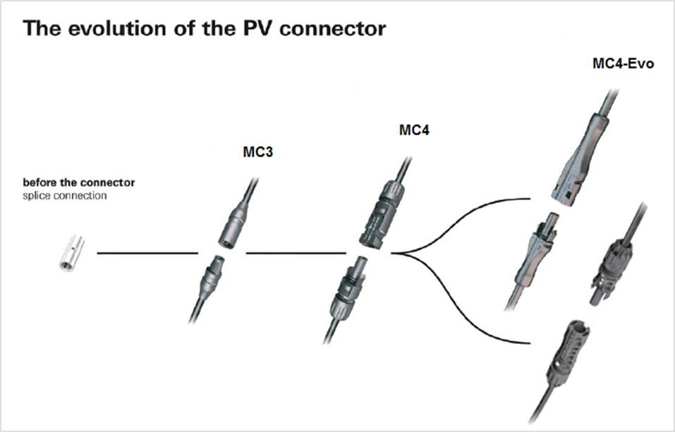 MC4隨著市場需求變化,陸續(xù)推出了MC4-Evo2和MC4-Evo3系列。MC4系列連接器,已經(jīng)完全能夠滿足客戶對1500V光伏系統(tǒng)的需求。