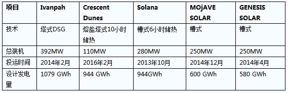表:美國五大光熱電站信息簡表