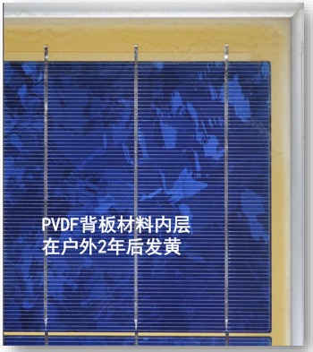 PVDF背板的內(nèi)層發(fā)黃現(xiàn)象在多個國家均有出現(xiàn)(中國,比利時,西班牙,美國和德國等),發(fā)生這種現(xiàn)象的組件戶外使用時間少于5年,而且發(fā)生這種現(xiàn)象的組件來自多個不同的生產(chǎn)商。背板黃變說明聚合物已發(fā)生老化降解,意味著組件存在失效和安全隱患。鑒于PVDF背板發(fā)黃現(xiàn)象的惡劣影響,有投資機(jī)構(gòu)表示,不會推薦有過發(fā)黃先例的組件廠商的產(chǎn)品。