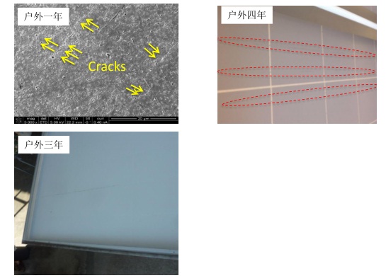 案例3:聚酯(PET)背板戶外4年出現(xiàn)嚴(yán)重開裂