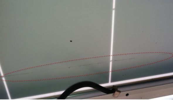 該案例為安裝于西班牙的一個2.3MW的光伏電站,使用了兩種組件類型,組件在戶外使用4年,所有PET聚酯背板都沿焊帶方向出現(xiàn)開裂。調(diào)查顯示,該電站的一些組件未通過濕漏電測試,而且該電站的所有者因為無法獲得更換的組件,直接導(dǎo)致組件失效。