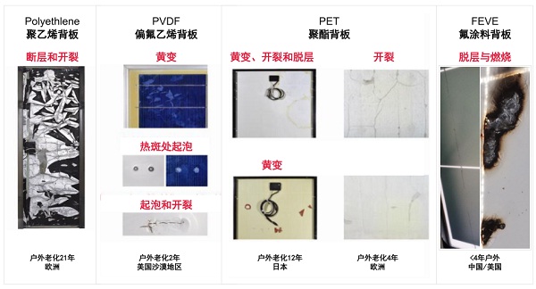 以上案例都是一些沒有經(jīng)過戶外測試驗證的背板材料所出現(xiàn)的問題,毫無疑問,如果電站投資商或者電站所有者能在選取組件之前就選擇經(jīng)過戶外測試驗證的材料,這些失效問題是可以在很大程度上避免的。