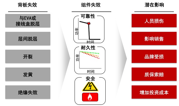 背板材料失效對組件的影響以及后果