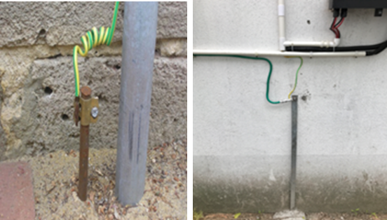 地線是光伏系統(tǒng)正常運行的關(guān)鍵,在房屋附近土層較厚、潮濕的地點,挖1.5m深坑根據(jù)供電公司要求,埋入50*5mm扁鋼或者φ12的圓鋼,添加降阻劑并引出地線,地線接到組件的支架上,同時組件邊框也必須接到支架上,接地電阻應(yīng)小于4Ω。