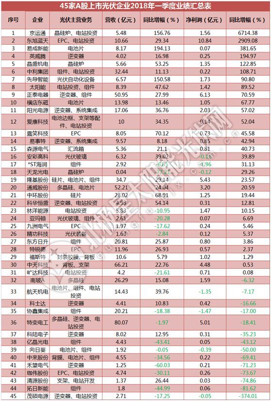 一季度45家光伏企業(yè)業(yè)績(jī)榜單登場(chǎng):超八成飄紅,兩級(jí)分化現(xiàn)象嚴(yán)重