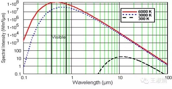 如果黑體的溫度上升到更高的6000K(5726.85℃),輻射出的波長將集中在紅色光和紫色光之間的可見光波段,并呈現(xiàn)白色。